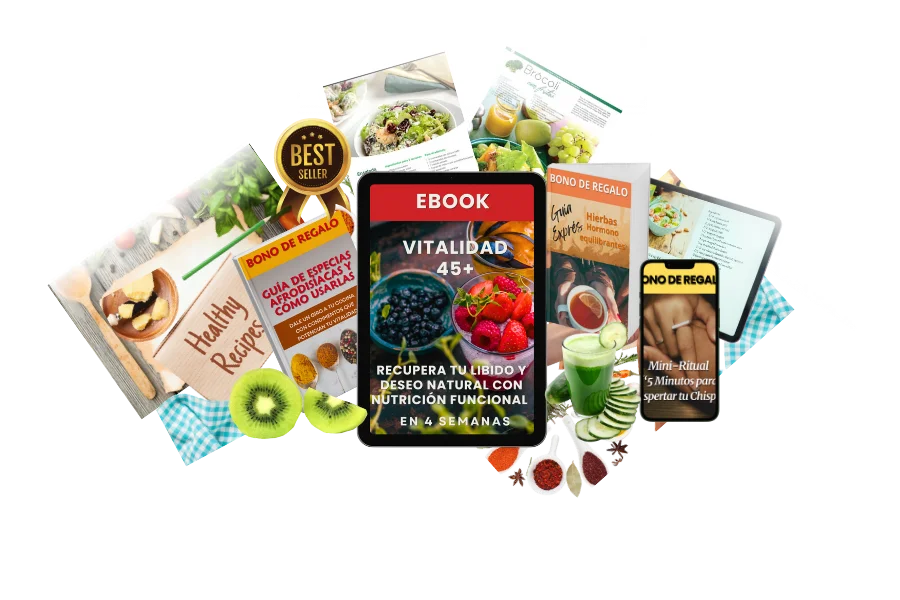 Una guía práctica para mujeres de 45+ que quieren recuperar su energía, apoyar su equilibrio hormonal y volver a conectar con su deseo de forma natural.