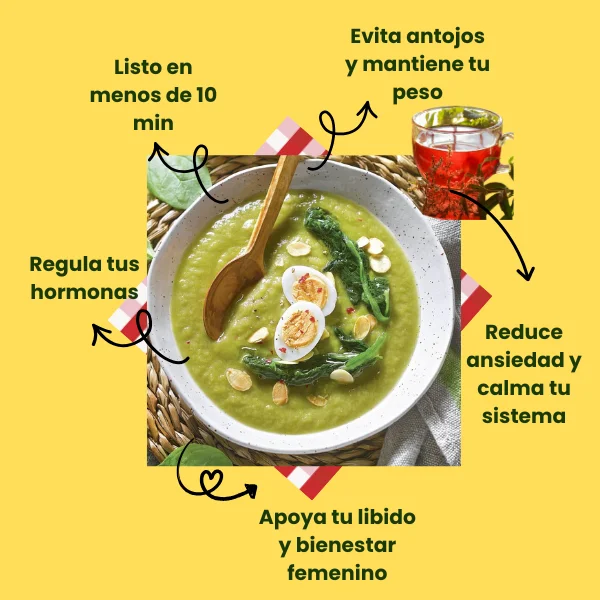 La guía está basada en recetas bajas en inflamación y combinaciones que apoyan tu energía, metabolismo y equilibrio hormonal, por lo que suelen ayudar a mujeres con estas condiciones. No reemplaza un tratamiento médico, pero sí potencia tu bienestar.